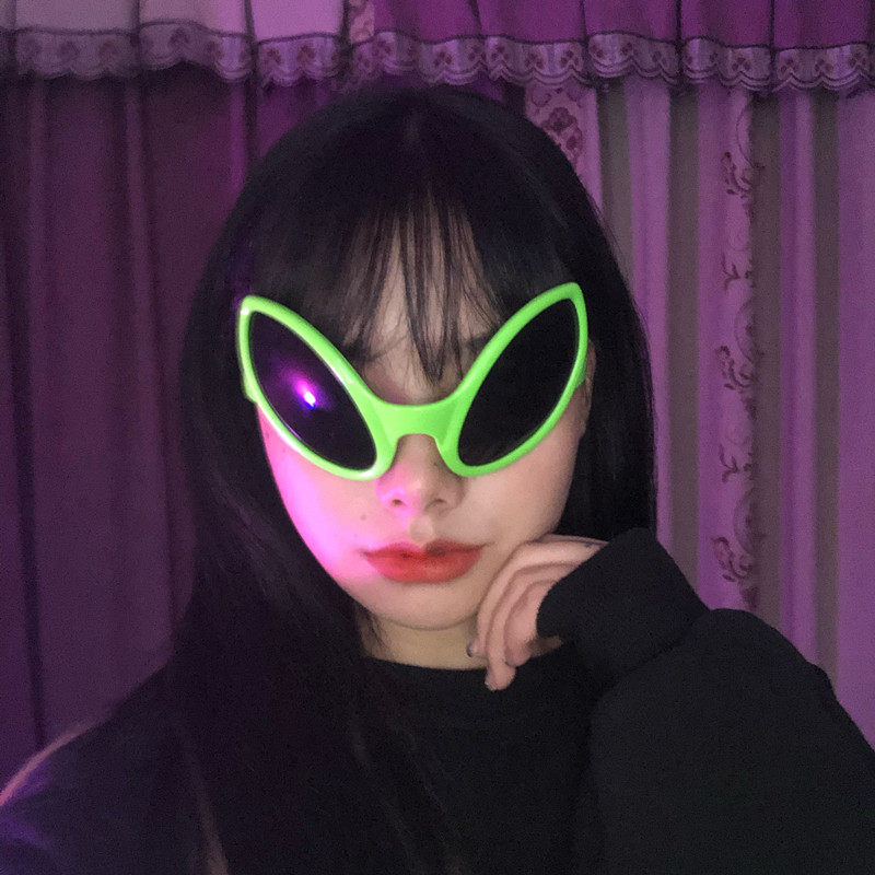 Japan-ROK Ins exaggeration to blame green Alien Sunglasses Mesh Red Funny Glasses Earth Cool Teenage Girl Trampoline Modelling-Taobao