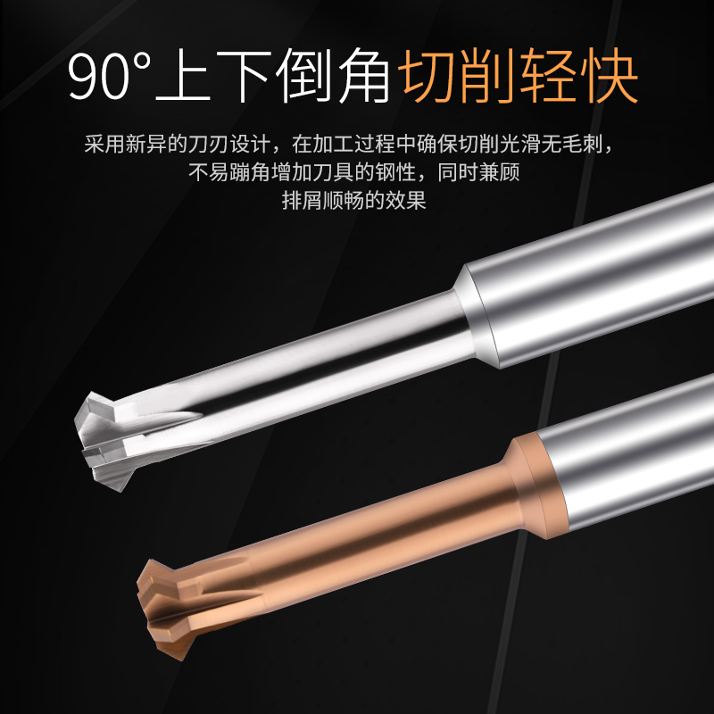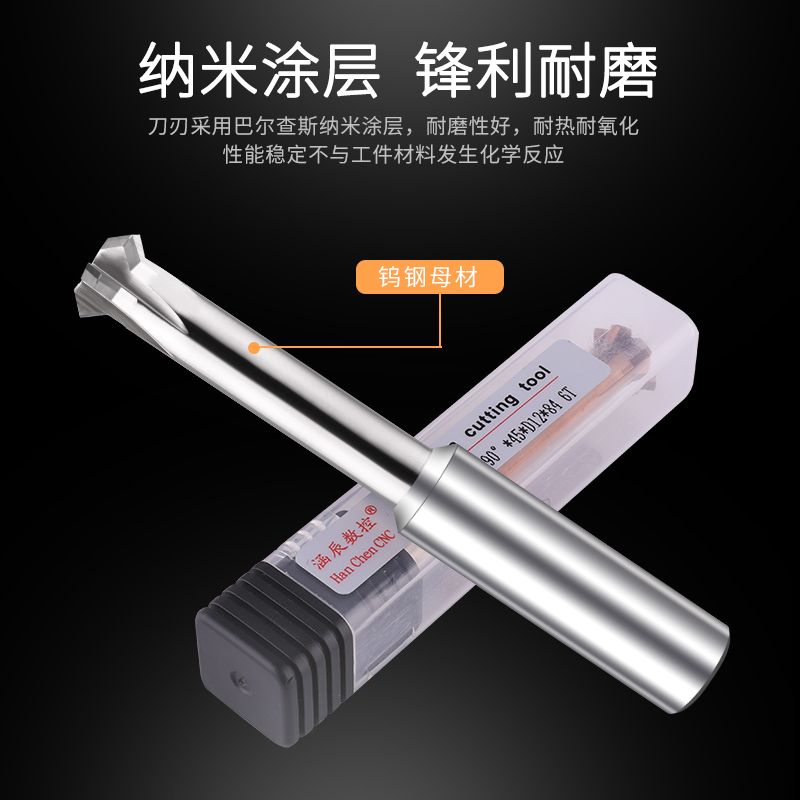 Hanchen CNC tungsten steel chamfering knife 90 degrees unilateral 45 degrees hard alloy upper and lower aluminum steel parts double-sided chamfering knife
