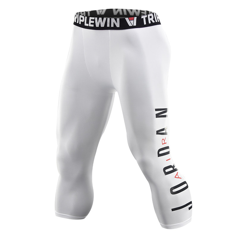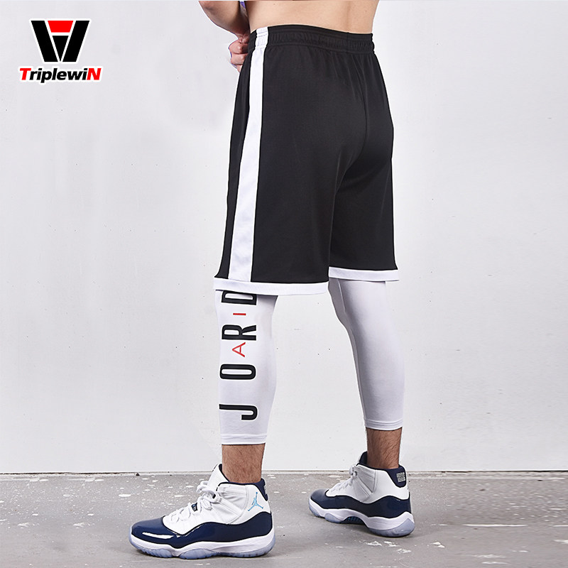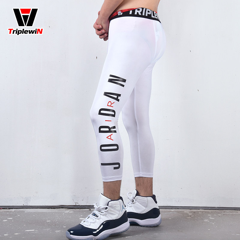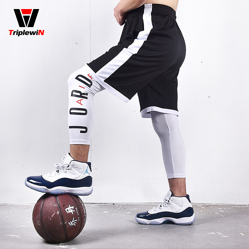 Quick-drying base thin section sports fitness stretch basketball training pants Football tight protective shovel ball three-point pants black and white