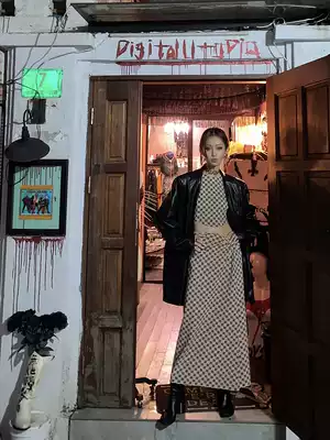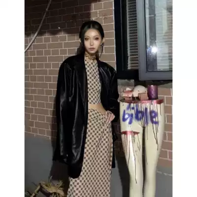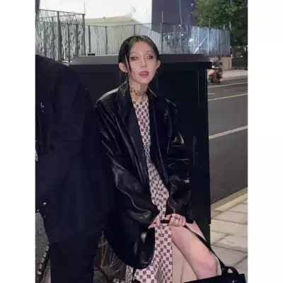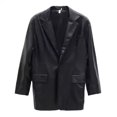 Meijia FUZZYKON original design black large contour retro leather jacket