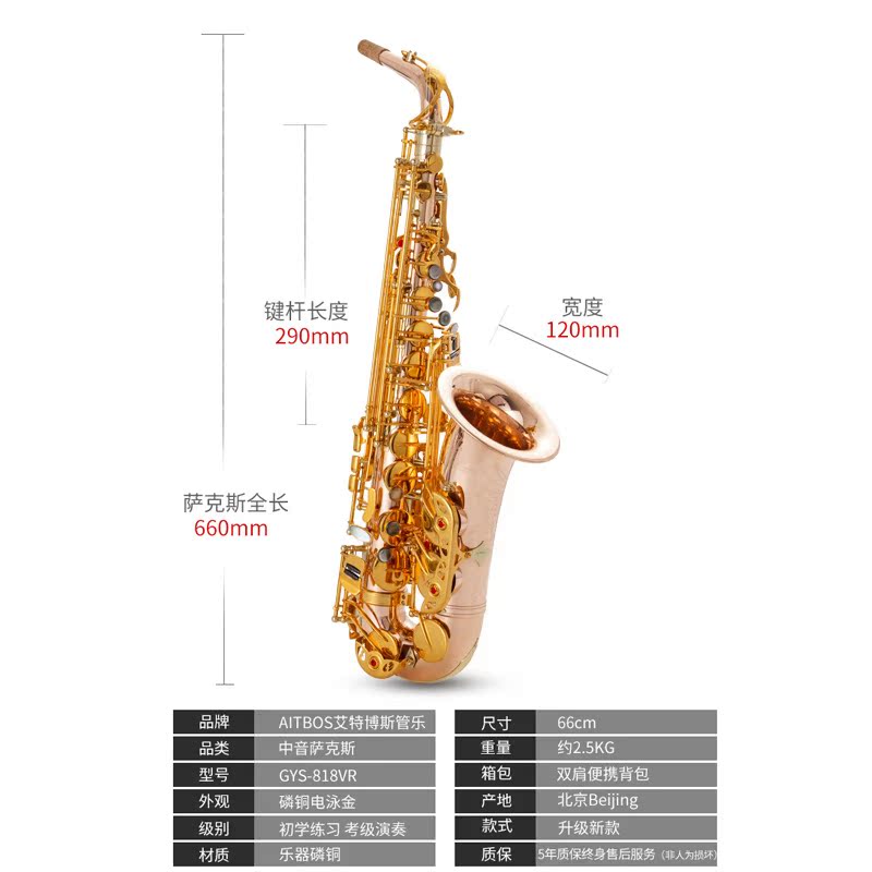 AITBOS GYS-818VR Phosphor Bronze Electrophoretic Paint E-drop Alto Saxophone