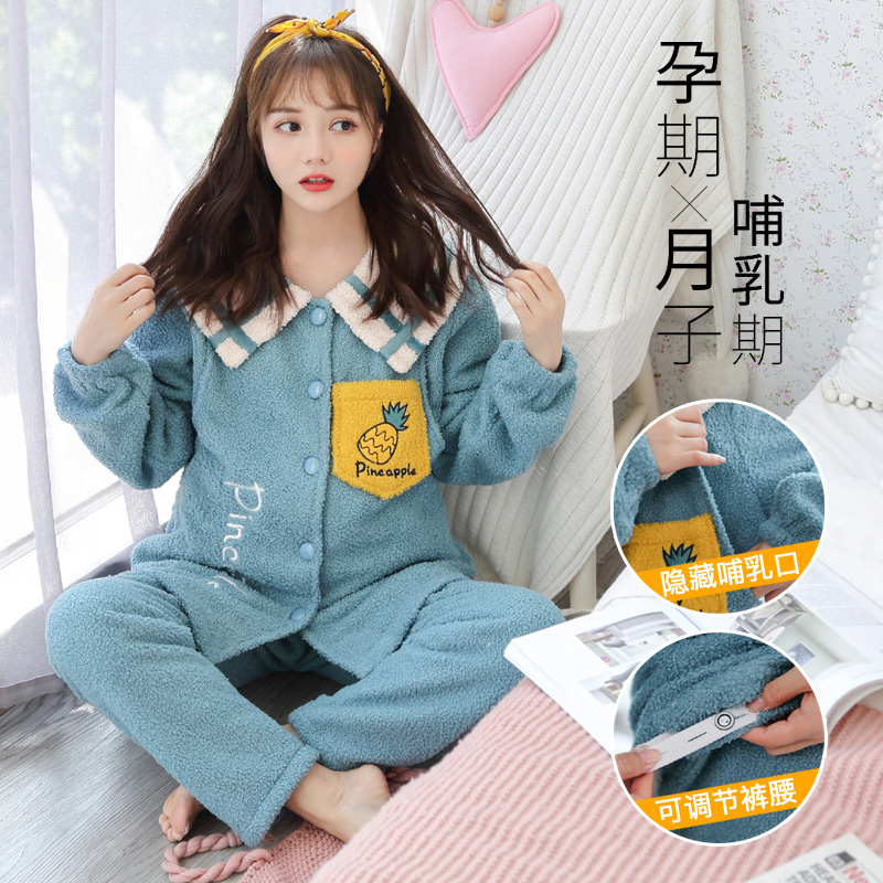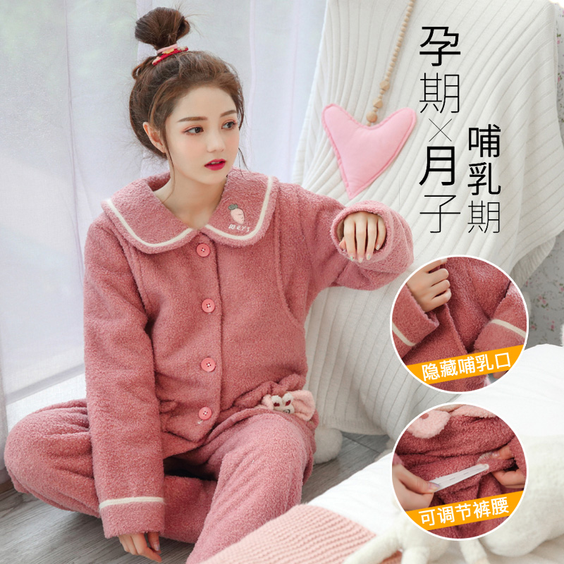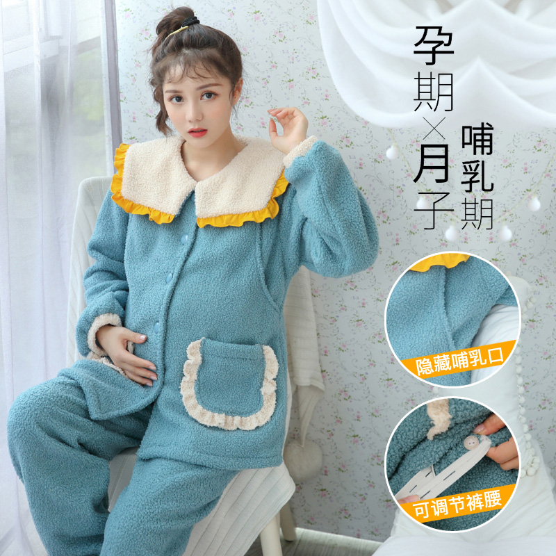 Maternity pajamas winter thick coral fleece confinement clothing postpartum nursing nursing clothing plus fat size teddy velvet suit