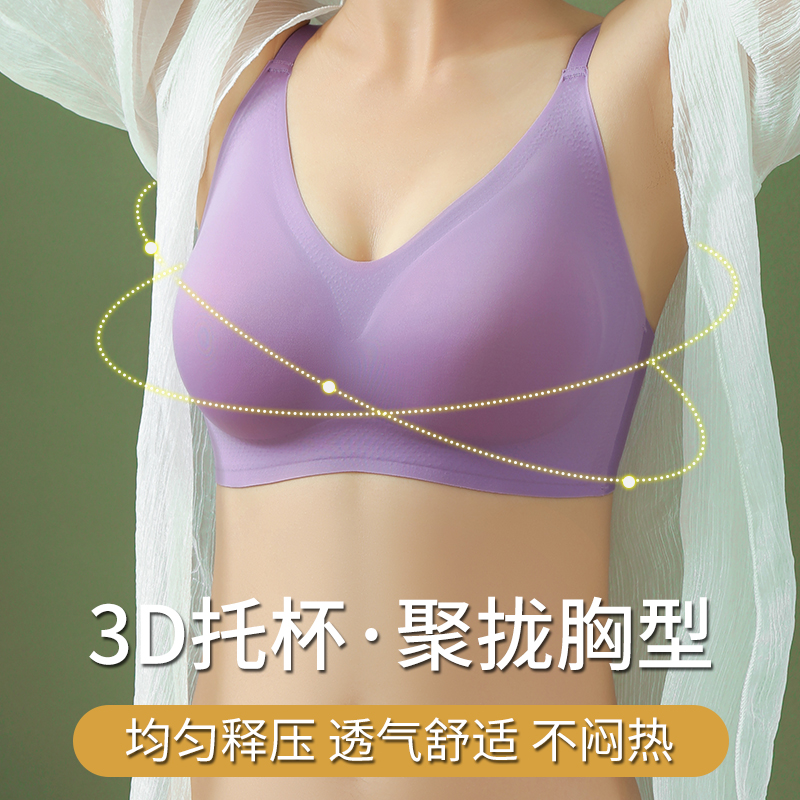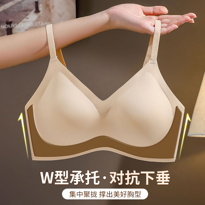 Seamless latex underwear for women without rims, small breasts, push-up, secondary breasts, anti-sagging sports bra, summer thin style