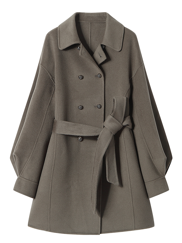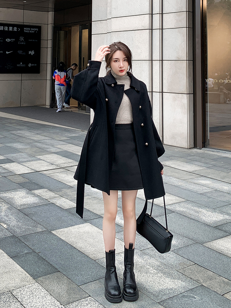 Black double - sided cashmere girl 2023 autumn and winter new waist temperament Heben wind wool cloak tide