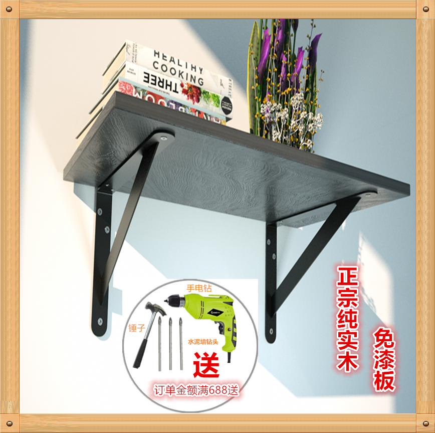 Wall shelf widened solid wood wall hanging tripod custom wall partition bookshelf load-bearing microwave oven shelf