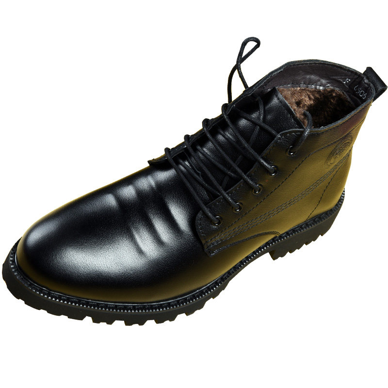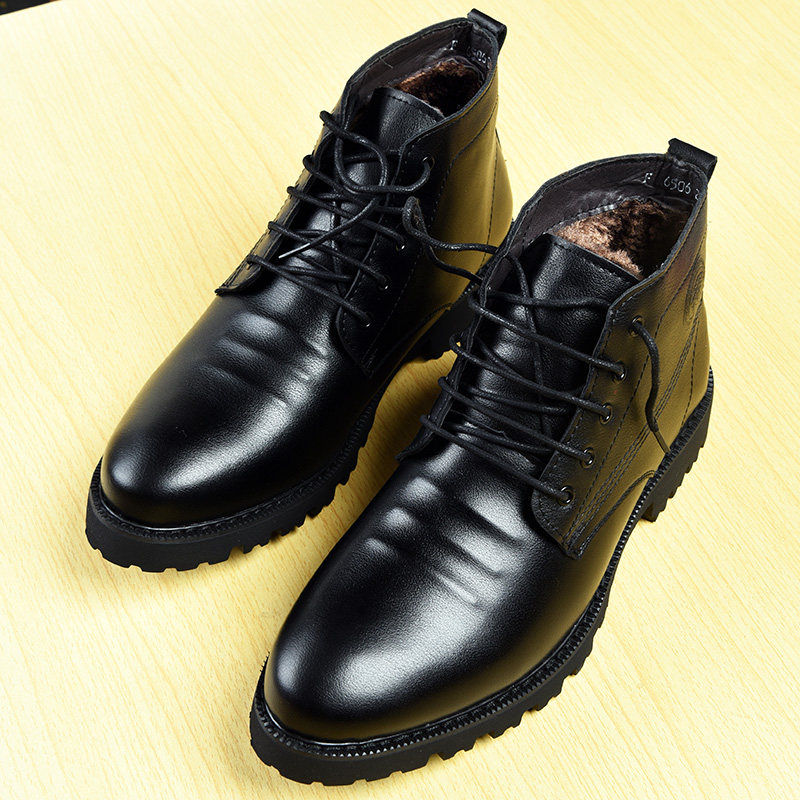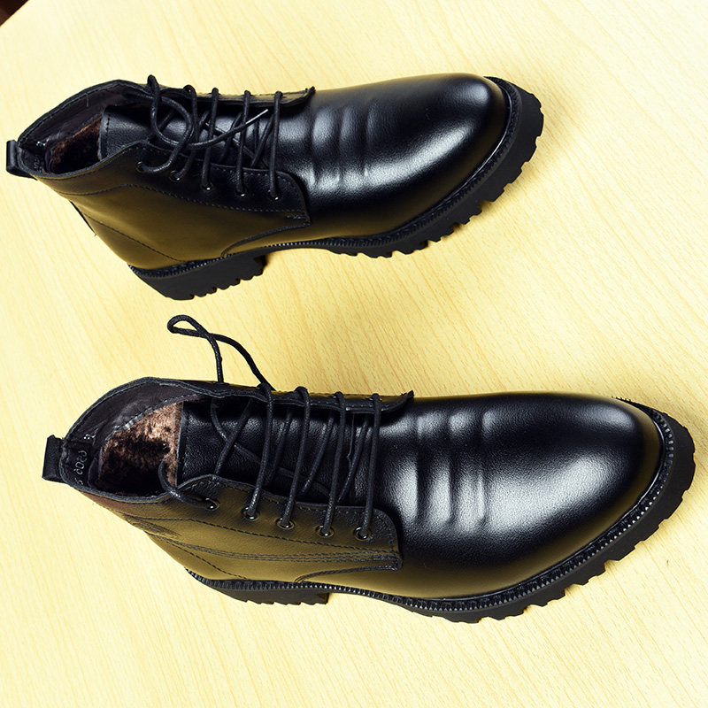 Martin Boots Man Winter Gush Leather Boots High Cylinder Leather Shoes Business Positive Dress Men's Mid Boots Inron Warm Cotton Shoes