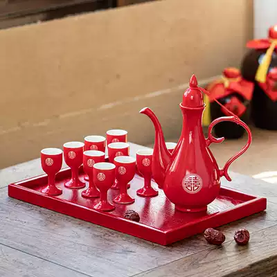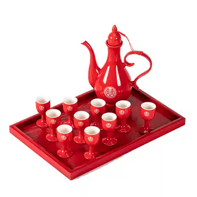A pot of ten cups round tray, a pot of ten cups square tray, a pot of ten cups, a pot of two glasses, a wine jug, a wine glass, a round tray, a square tray