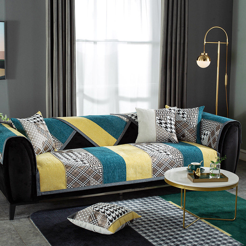 Nordic modern sofa cushion four seasons universal chenille non-slip living room leather sofa cover towel simple backrest cover cloth