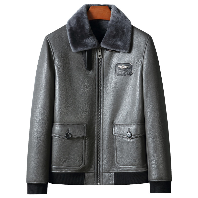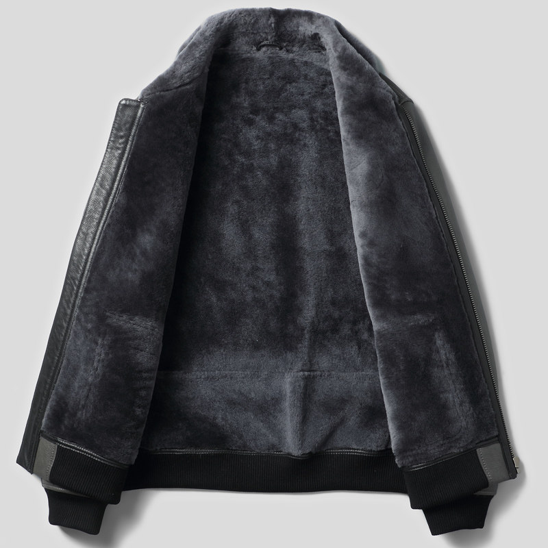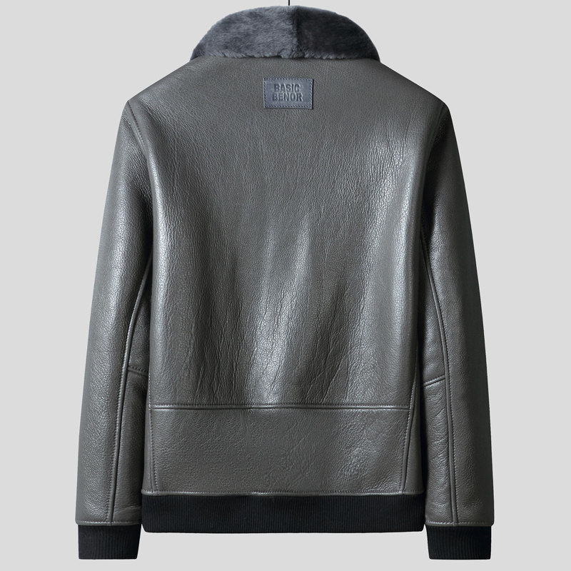 Winter new Haining original ecological fur integrated men's motorcycle short jacket leather leather jacket thick fur jacket