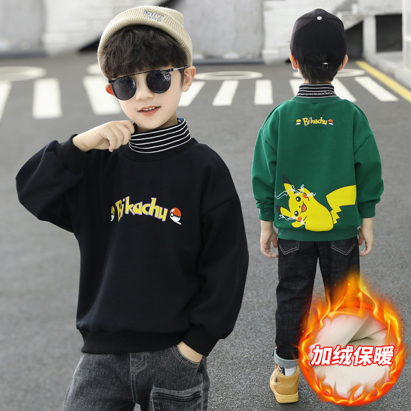 Boys' pure cotton casual top fake two pieces plus velvet thick autumn and winter 2021 new children's winter long-sleeved turtleneck bottoming shirt