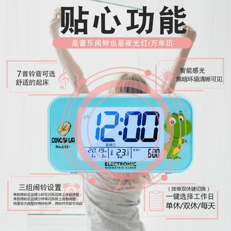Electronic alarm clock student with silent bedside luminous children's alarm boy smart get up artifact bedroom small clock