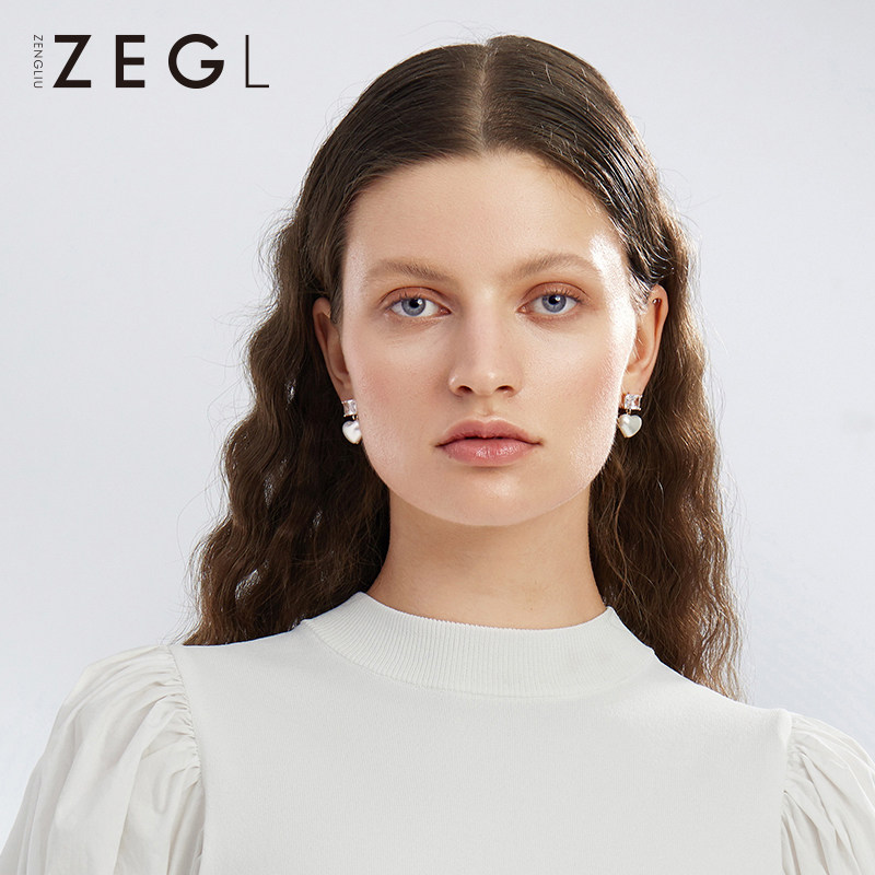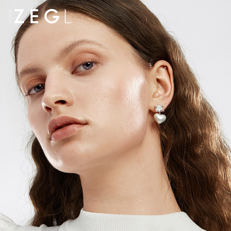 ZENGLIU light luxury love imitation pearl earrings female temperament heart-shaped earrings 925 silver needle niche high-end earrings