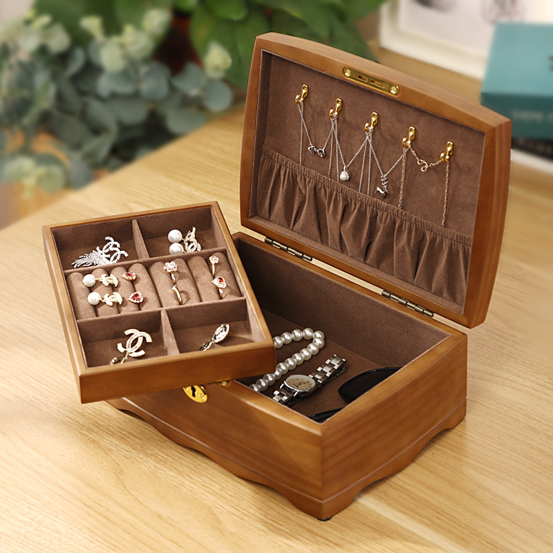 Retro Solid Wood First Accessories Box Ear Needle Earrings Necklace Upscale Advanced Hand Watches Hand-decorated Wood Containing Box Anti-Oxidation