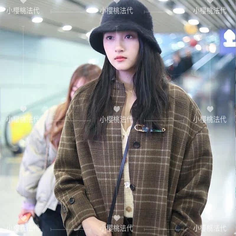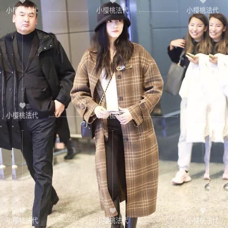 Cherry France maje 20 autumn winter guan Xiaotong with the same gge grain coat loose medium long version wool coat daughter