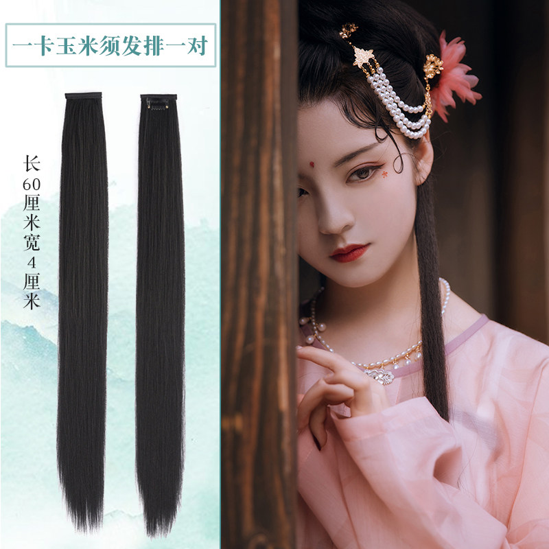 Ancient Costume Wig Fairy long Liuhai Straight Hair Piece Lengthened Temples Corner Cos cartoon and hymn film Drama Opera Wig pieces
