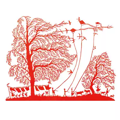 Chinese style handmade paper-cut manuscript(flying a kite)pattern paper carving hollow window grille material paper-cut material