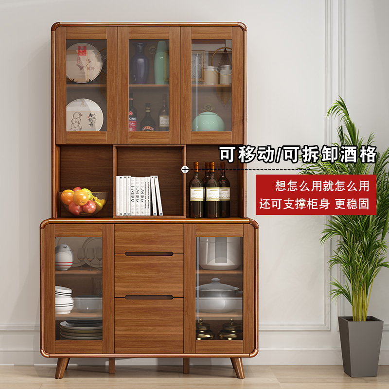 Chinese style dining cabinet solid wood frame tea water wine cabinet integrated modern minimalist kitchen storage high cabinet home living room leaning against wall