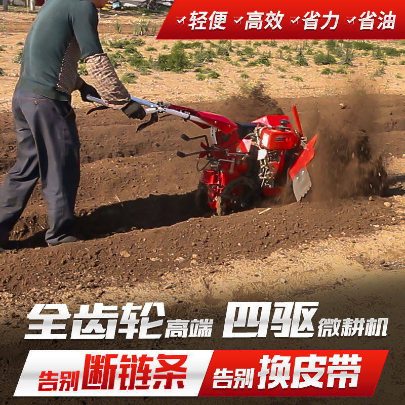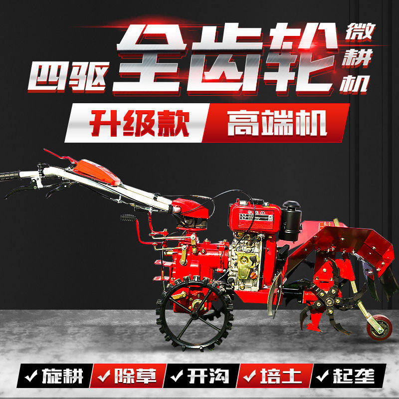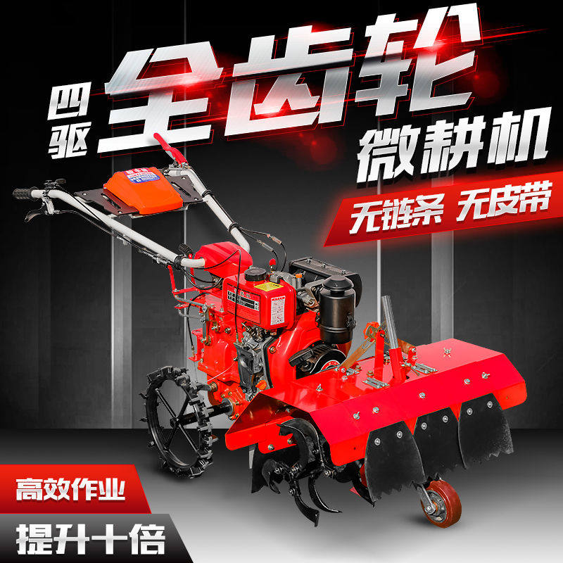 Four-drive small cultivator self-propelled rotary tiller multifunctional field garden management machine ditching the peat and earth ridging weeding machine pine soil