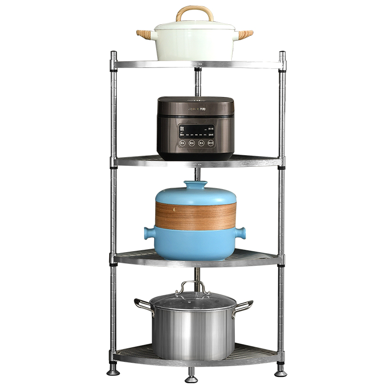 304 Stainless Steel Kitchen Shelving Triangular Pan Rack Corner Shelf Floor Multilayer Wall Corner Containing pan shelf