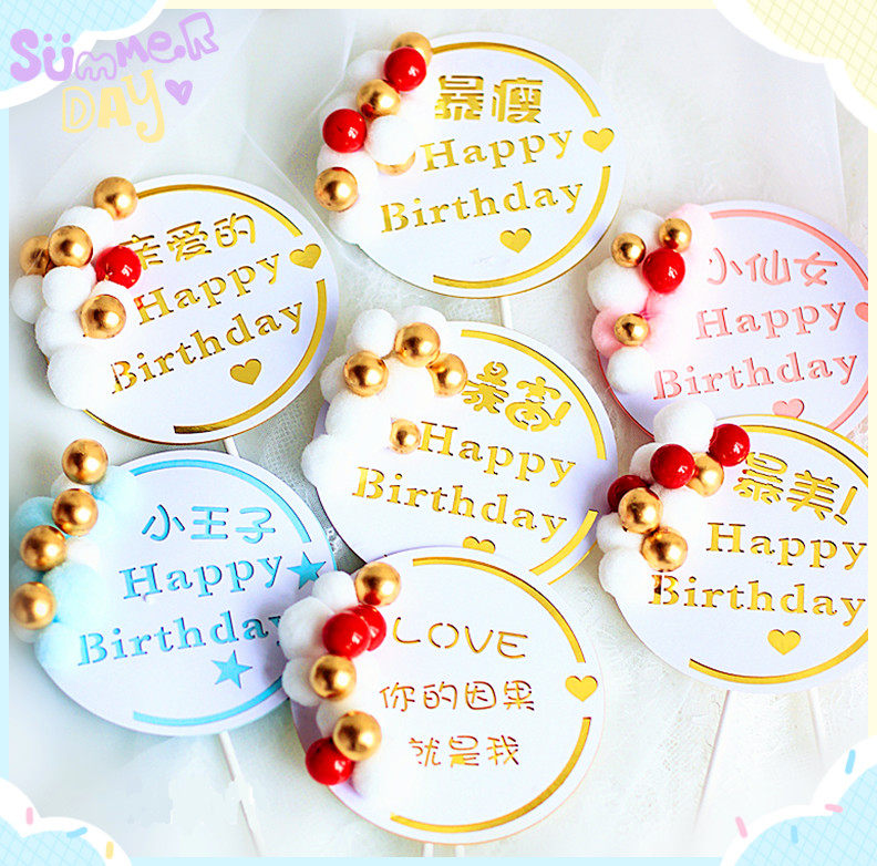 Internet celebrity happy birthday cake decoration pearl plug-in card rich and thin little prince little fairy baking plug-in card