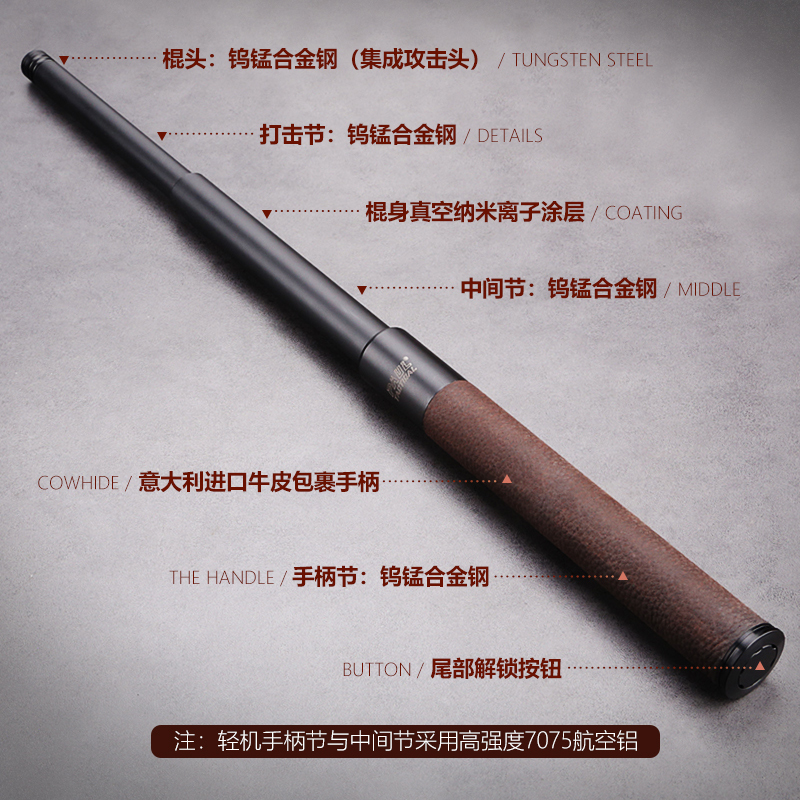 Honan Ralph Lauren Polo Standard Heavy Machinery Mechanical Telescopic Stick Handmade Cowhide Handle Mechanical Stick Legal Body Protection