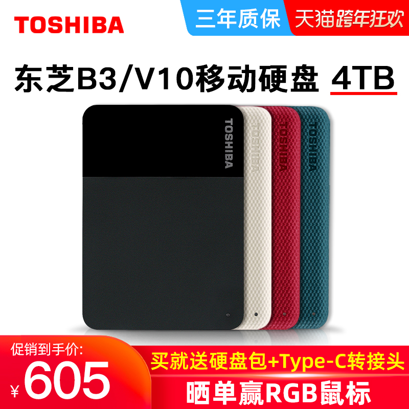 (Delivery package) coupon minus 20) Toshiba portable hard disk 4T external mobile phone B3 USB3 0 high speed compatible with Apple mac Toshiba 4tb large capacity external ps4 ps5 game