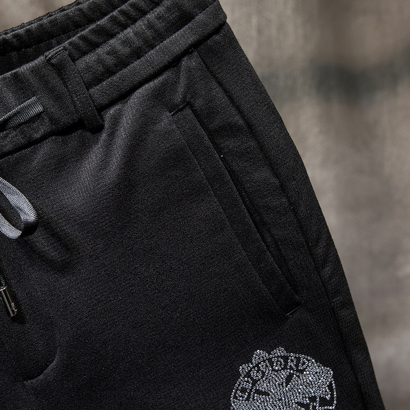 Autumn and winter style men's sports pants black tightness waist casual pants men's body small footrest pants men's and Korean version trendy