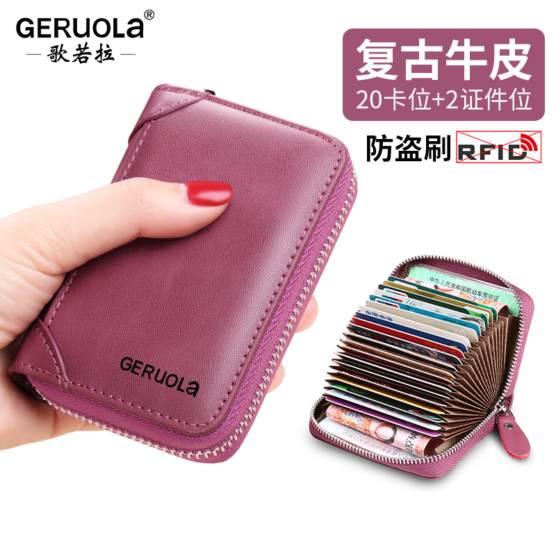 Card bag woman exquisite high-grade small anti-degaussing 2021 large capacity multi-card bit leather id to store the wallet new model