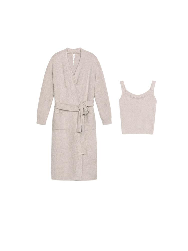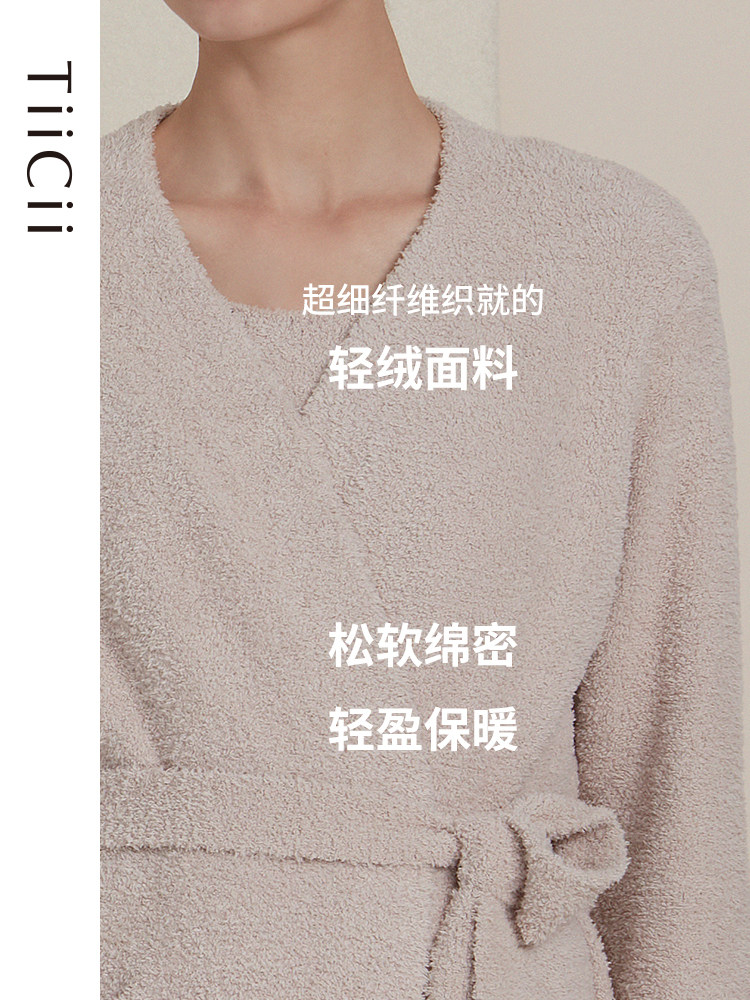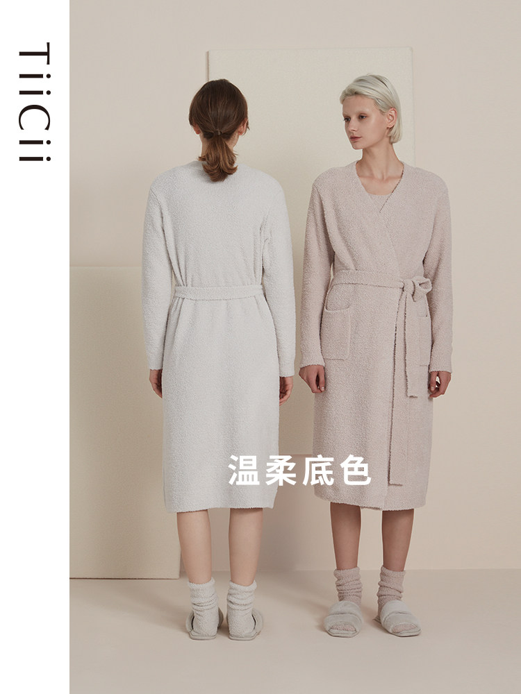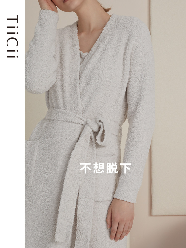 TiiCii French tie wrap skirt women's autumn and winter long section warm home service marshmallow light velvet knitted pajamas