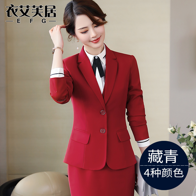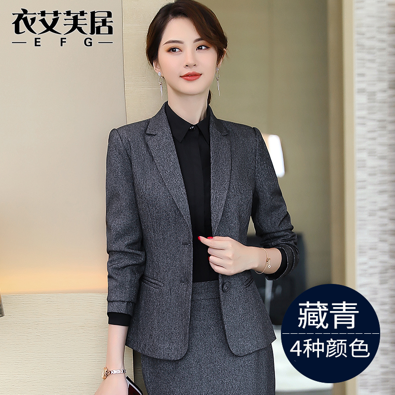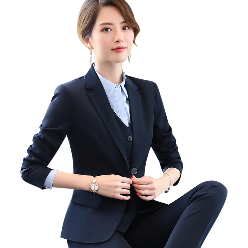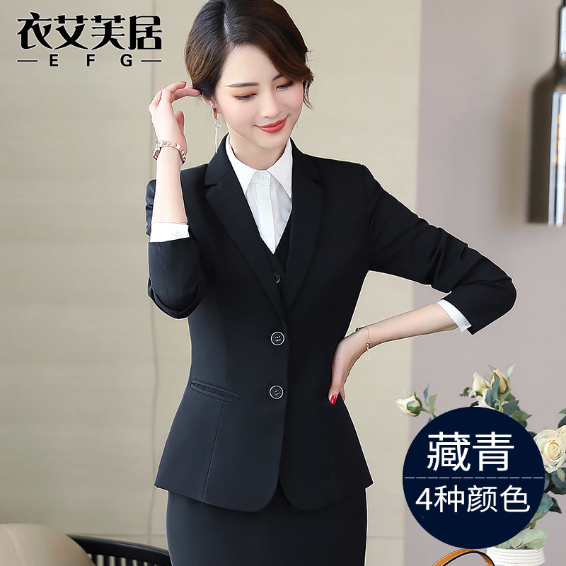 Navy blue suit suit women autumn and winter professional dress ol business overalls plus size interview black suit jacket