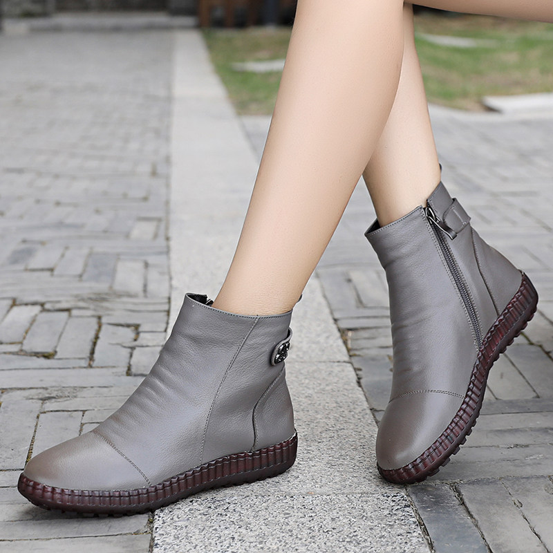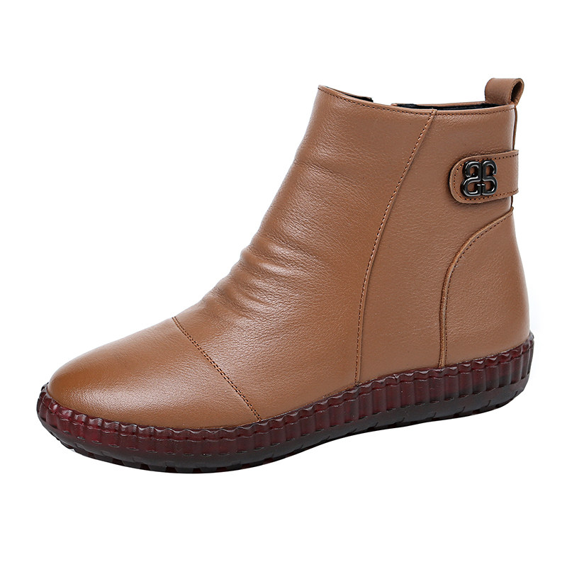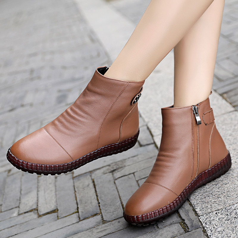 Autumn and winter leather soft-soled mother shoes cotton shoes flat Martin boots soft leather plus velvet boots women's short boots large size 41-43