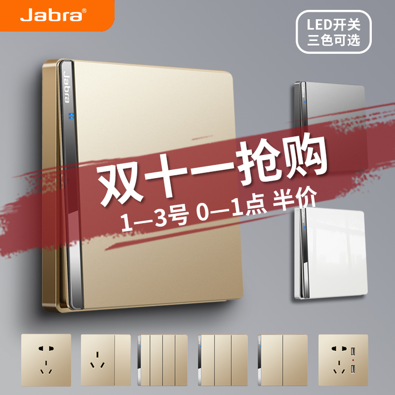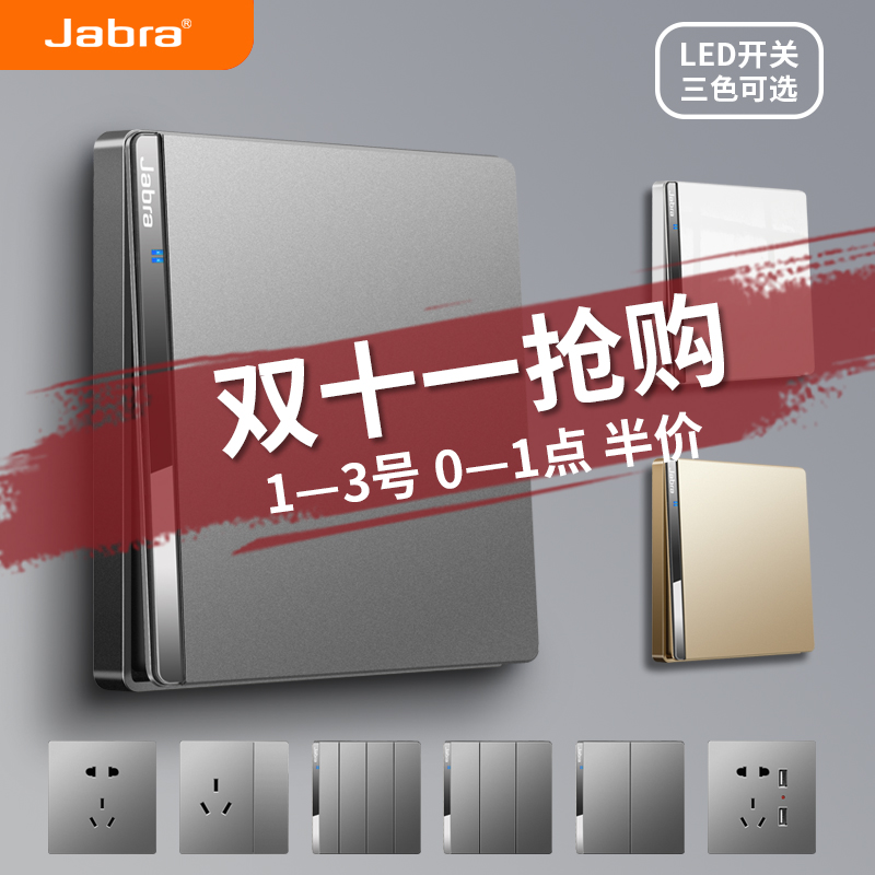 Jabra switch socket household 86 type concealed LED indicator switch one open single control single open single panel