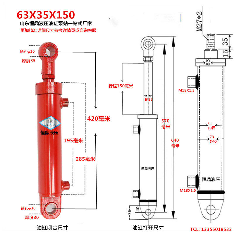 63 Hydraulic cylinder hydraulic cylinder two - way small lift custom hydraulic station 100 tons