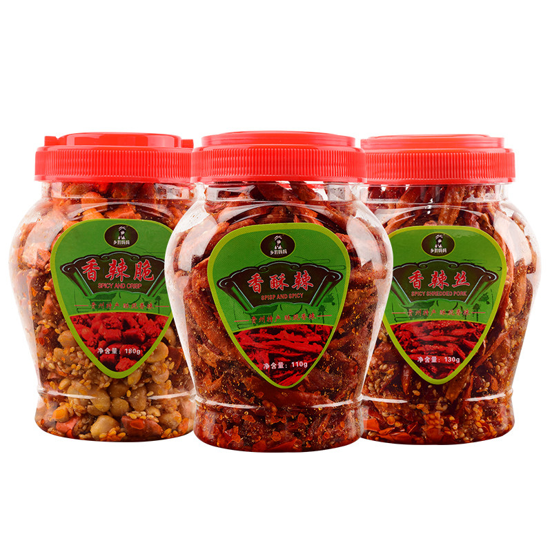 Guizhou native snack fried chili peppers with spicy and crisp dried peanuts crisp and crisp and spicy and spicy to eat 3 bottled