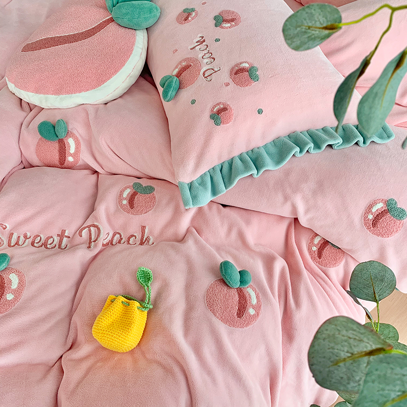 Peach maiden cream four - piece thickened double - sided coral flannel condom