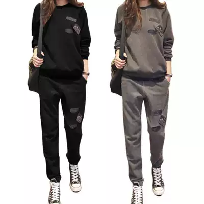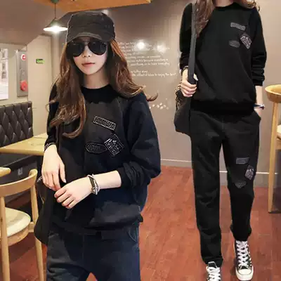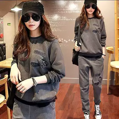 European station 2021 autumn new sports suit women's loose fashion age-reducing casual round neck thick cotton T two-piece suit