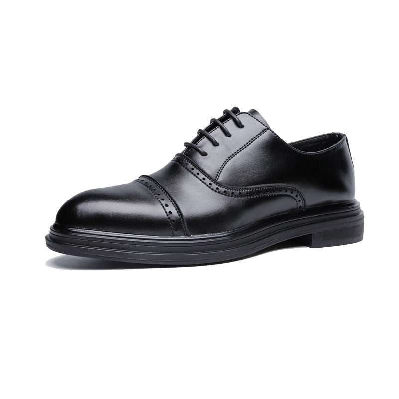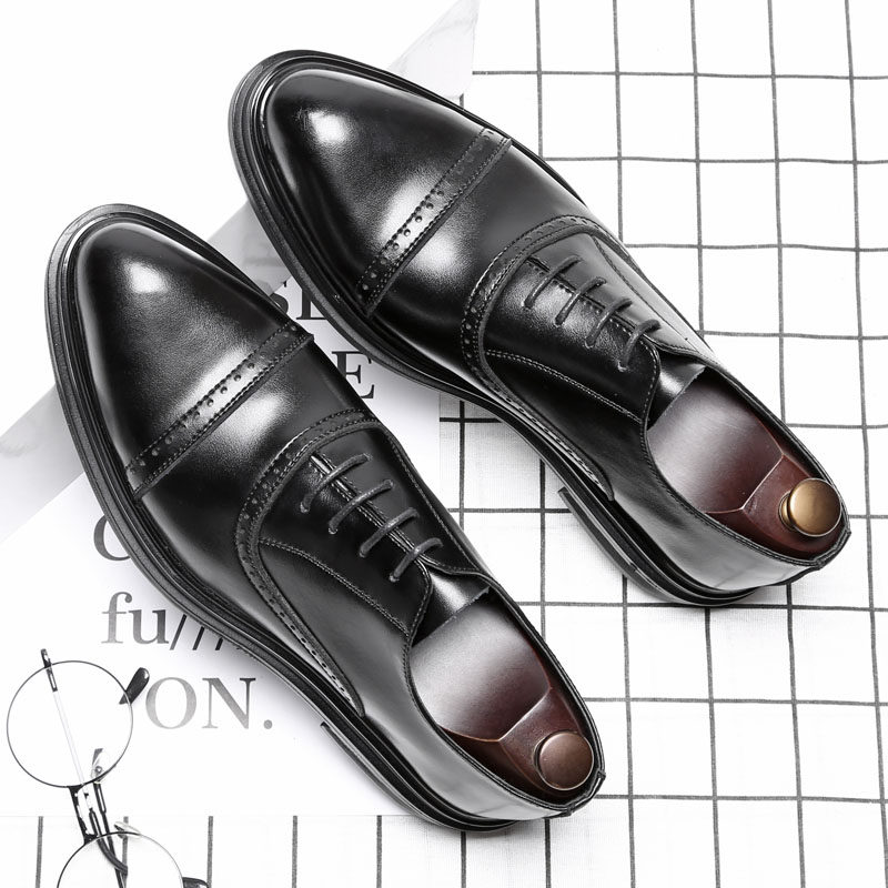 Business formal leather shoes men's autumn solid color breathable increase casual leather brogue men's shoes groom wedding shoes