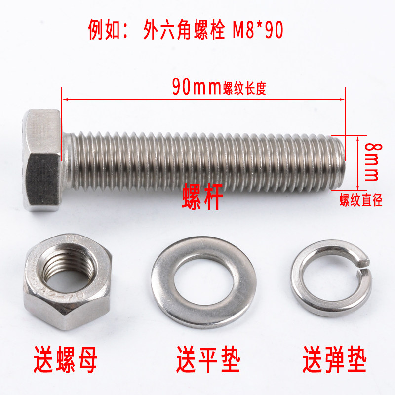External hexagonal screw 304 stainless steel bolt screw 6 corner head large short machine tooth rosie flat cushion M8M14M16-Taobao