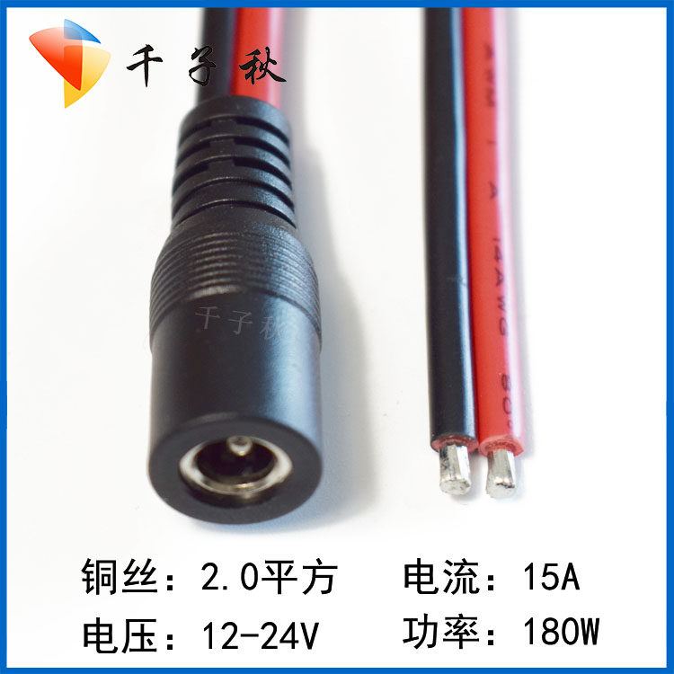 DC female head power cord 5.5*2.1 2.5mm large current 2 square 15A pure copper core red and black wire monitoring connector