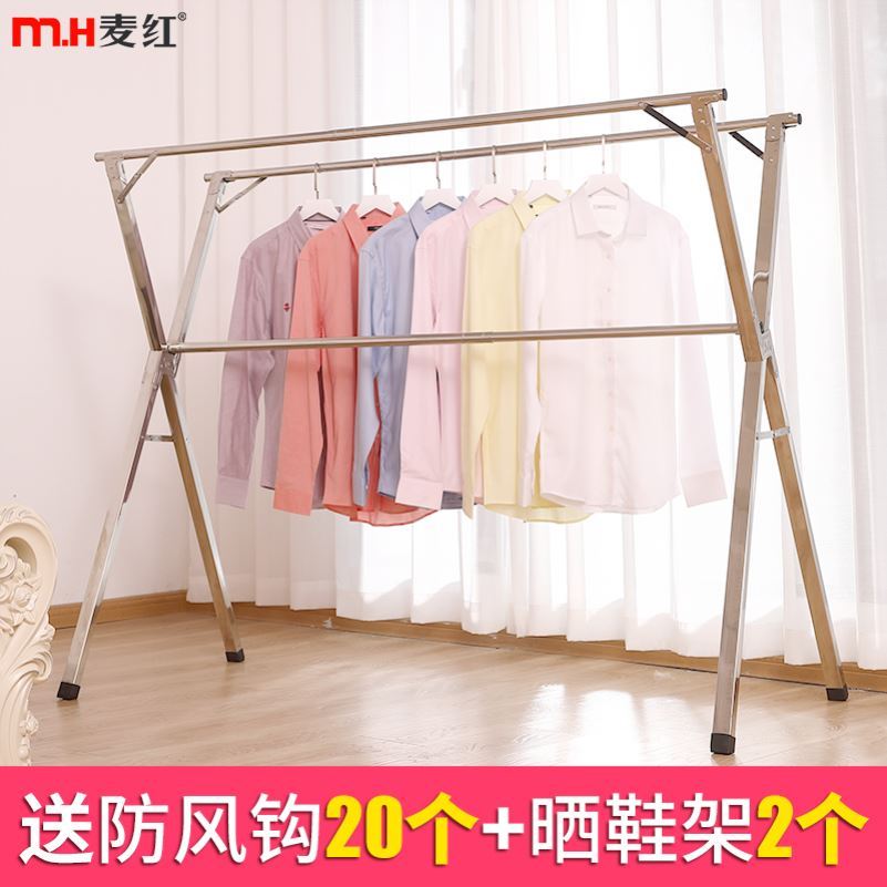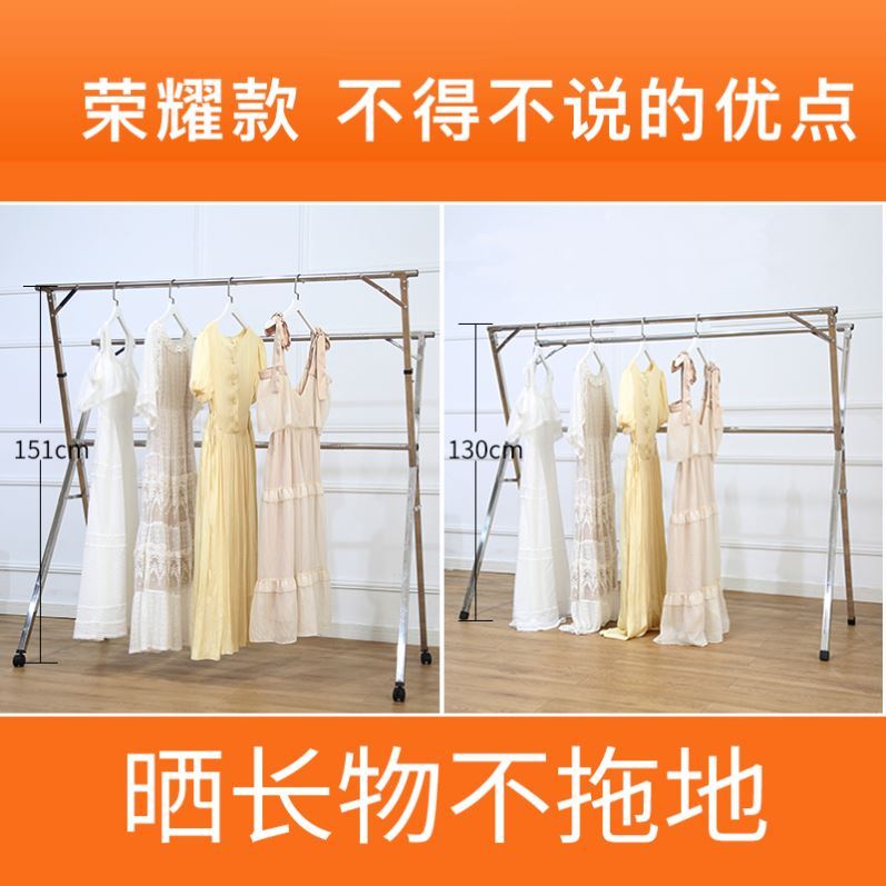 304 stainless steel clothes rack mobile telescopic folding floor double rod indoor and outdoor clothes rack household drying quilt