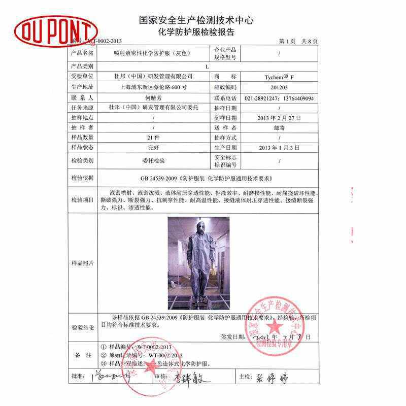 DuPont TychemF class chemical protective clothing anti-acid, strong acid anti-acid, solvent industrial dust suits
