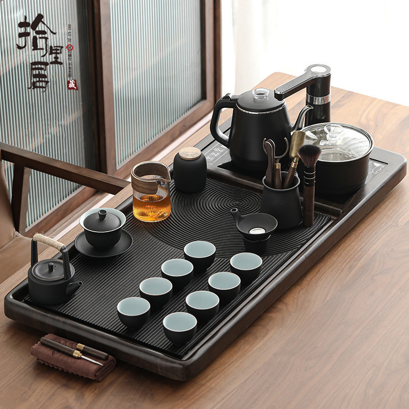 Fully automatic one Wujinshi tea set tea tray set solid wood small tea table tray household stone tray kettle