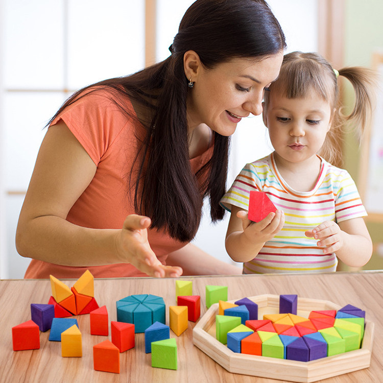 Ward Fosheng Living Museum Log Color Triangular Geometric Maths 3 Year Old Children Puzzle Building Toys-Taobao