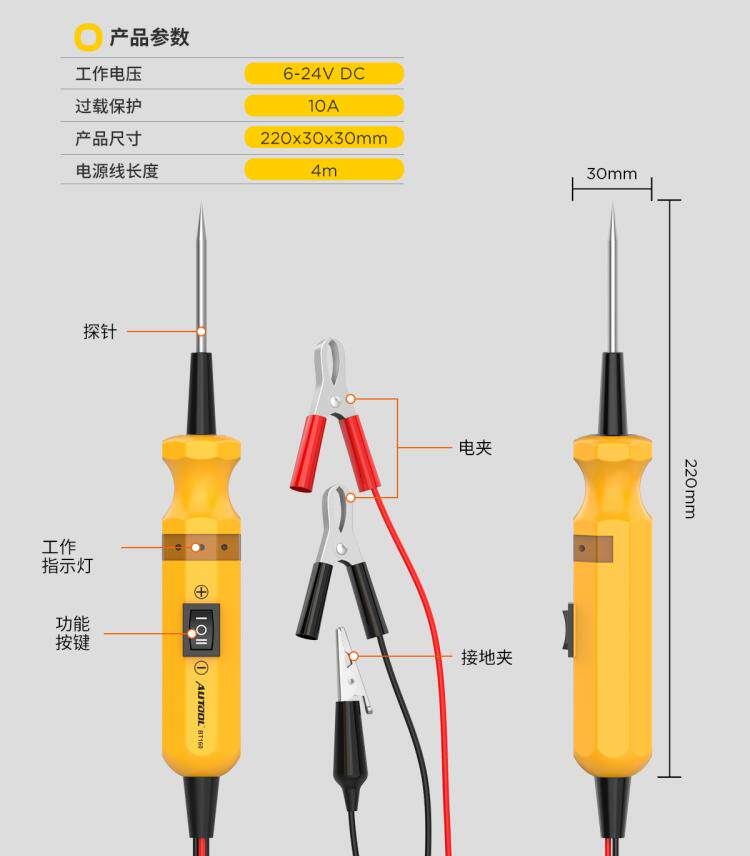 AUTOOL BT160 car test pen test light test LED circuit test pen tester multi-function test light test