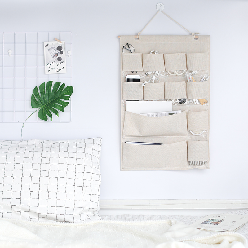 Blank wall hanging hanging bag Non-printed wind cotton linen fabric multi-layer wardrobe storage bag Dormitory bed side storage hanging bag