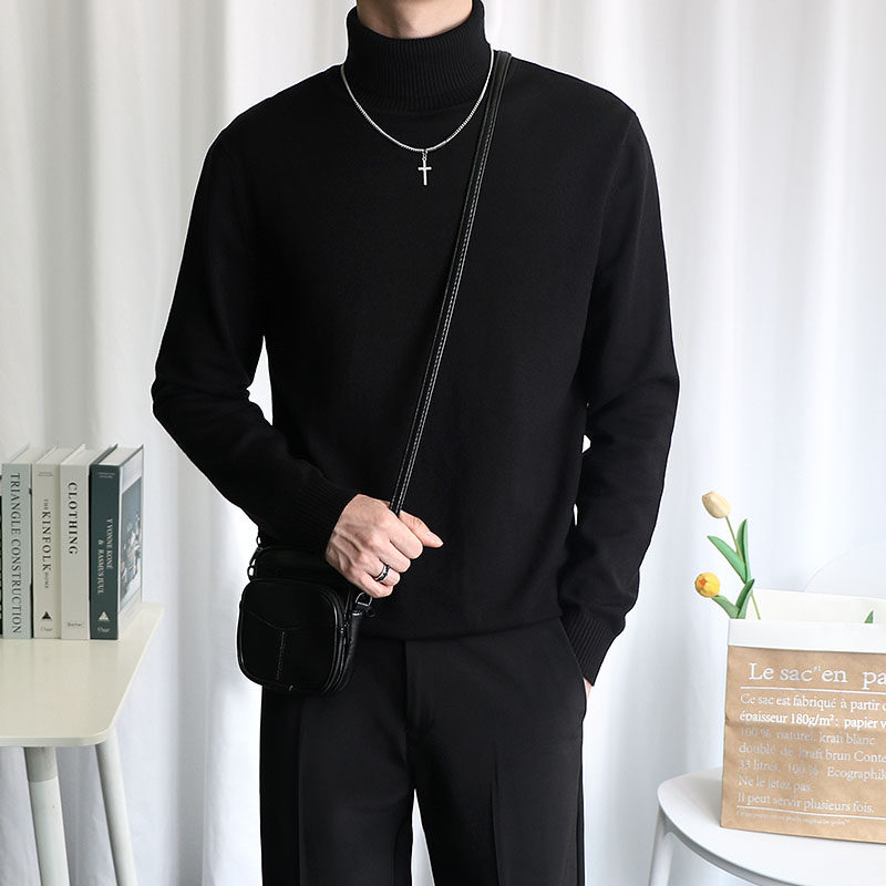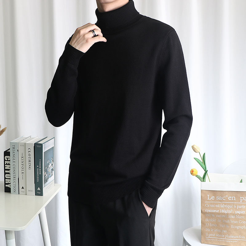 High collar sweater men's body black autumn and winter plus suede thickened needle weaters Korean version trendy men hitch undershirt-Taobao
