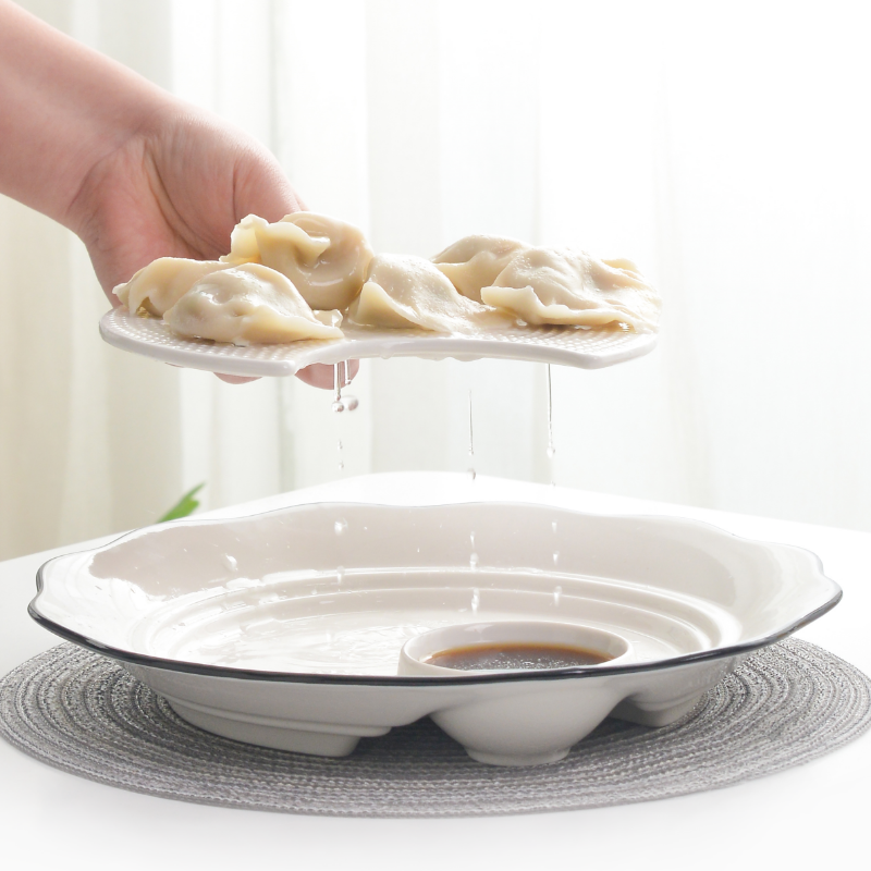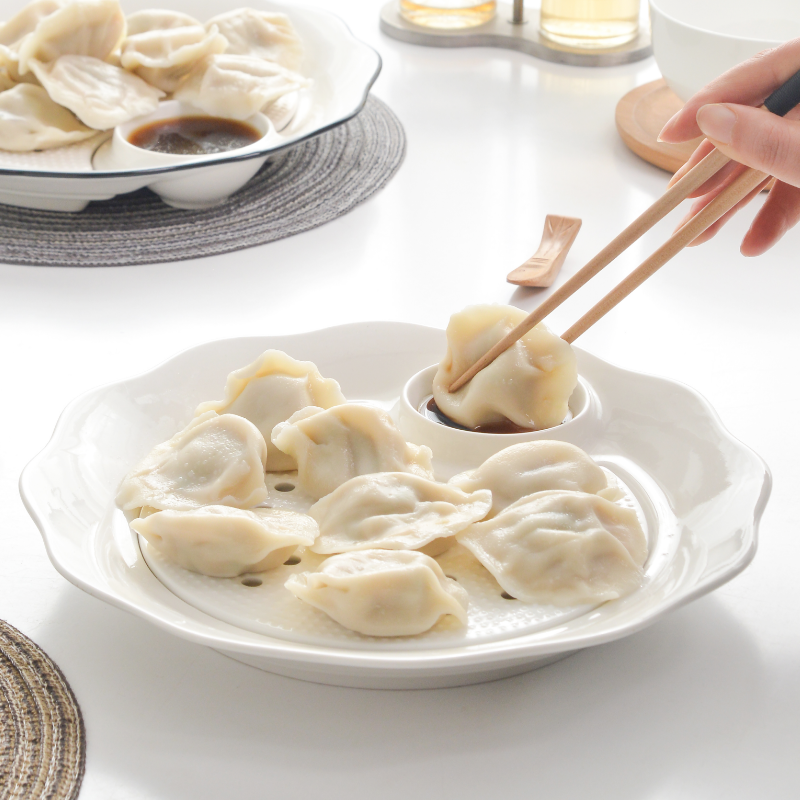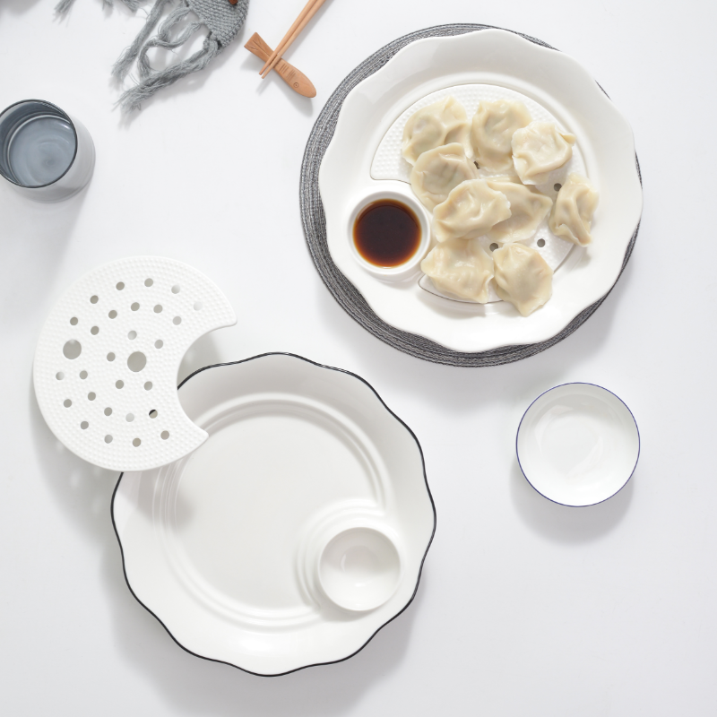 Logistics damage Free reissue 2 black line 10-inch double-layer drained boiled dumplings (ceramic) 2 pure white 10-inch double-layer drained boiled dumplings (ceramic) black line 10 inches