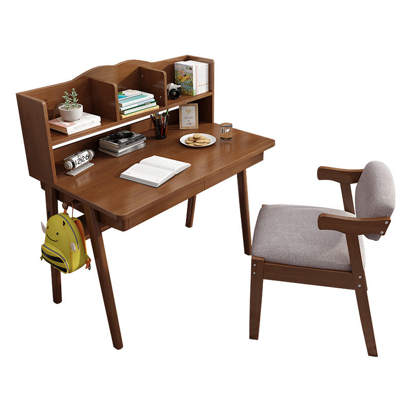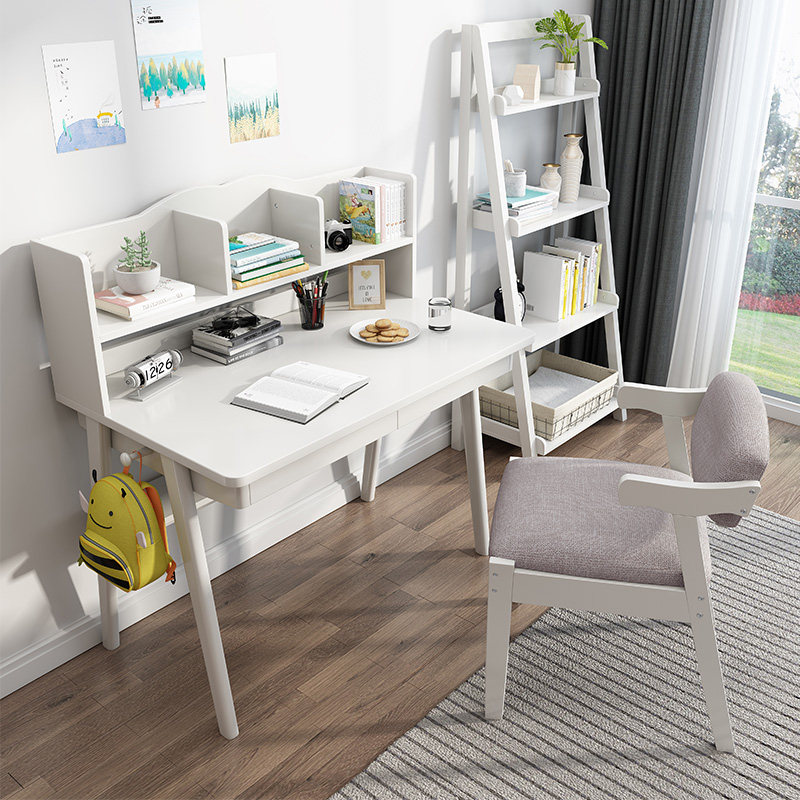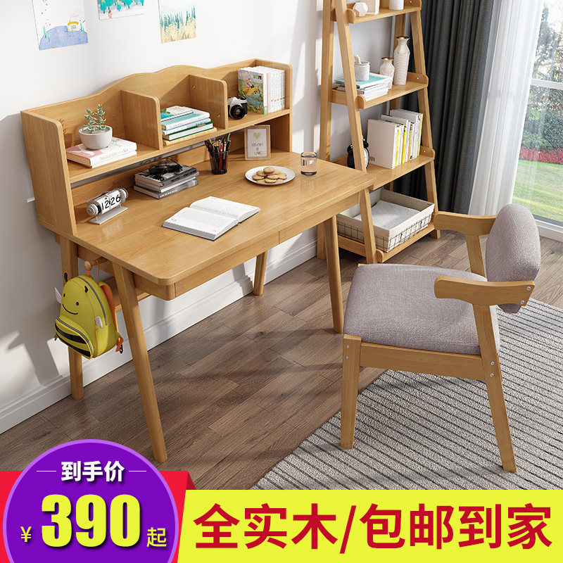 All solid wood desk bookshelf combination simple home bedroom children's desk primary school computer desk one table