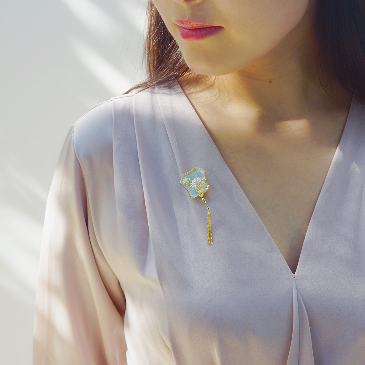 HeyJewel Cloisser-clad beauty Walk of the Po Flowers Collegial Fan Shaho Pyreu Brooch Chamomile Girl Day Gifts