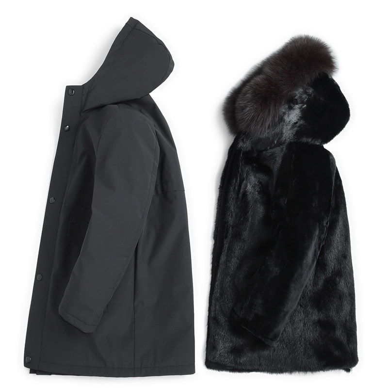 Park overcomes the middle and elderly black coat winter of man's long mink coat fur